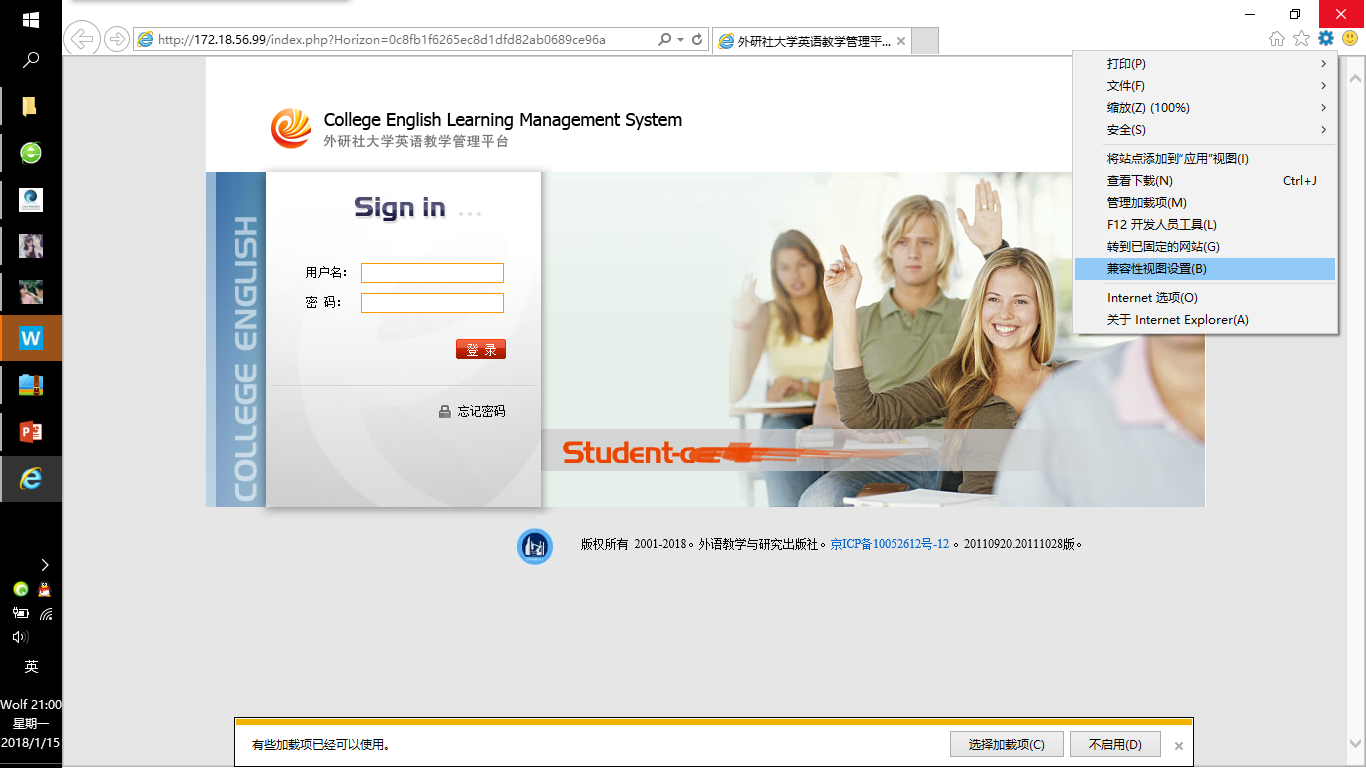 随后,点击右上角的齿轮,选择“兼容性视图设置”